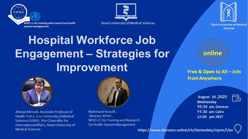 وبینار آموزشی بین المللی Hospital Workforce Job Engagement – Strategies for Improvement ۲۹ مرداد ۱۴۰۴ | ۱۰:۰۱ کد : ۵۳۹۲۵ اطلاعیه ارسال به دیگران نام شما ایمیل شما ایمیل دریافتکننده ارسال انصراف تعداد بازدید:۱۶۴۵ وبینار آموزشی بین المللی Hospital Workforce Job Engagement – Strategies for Improvement