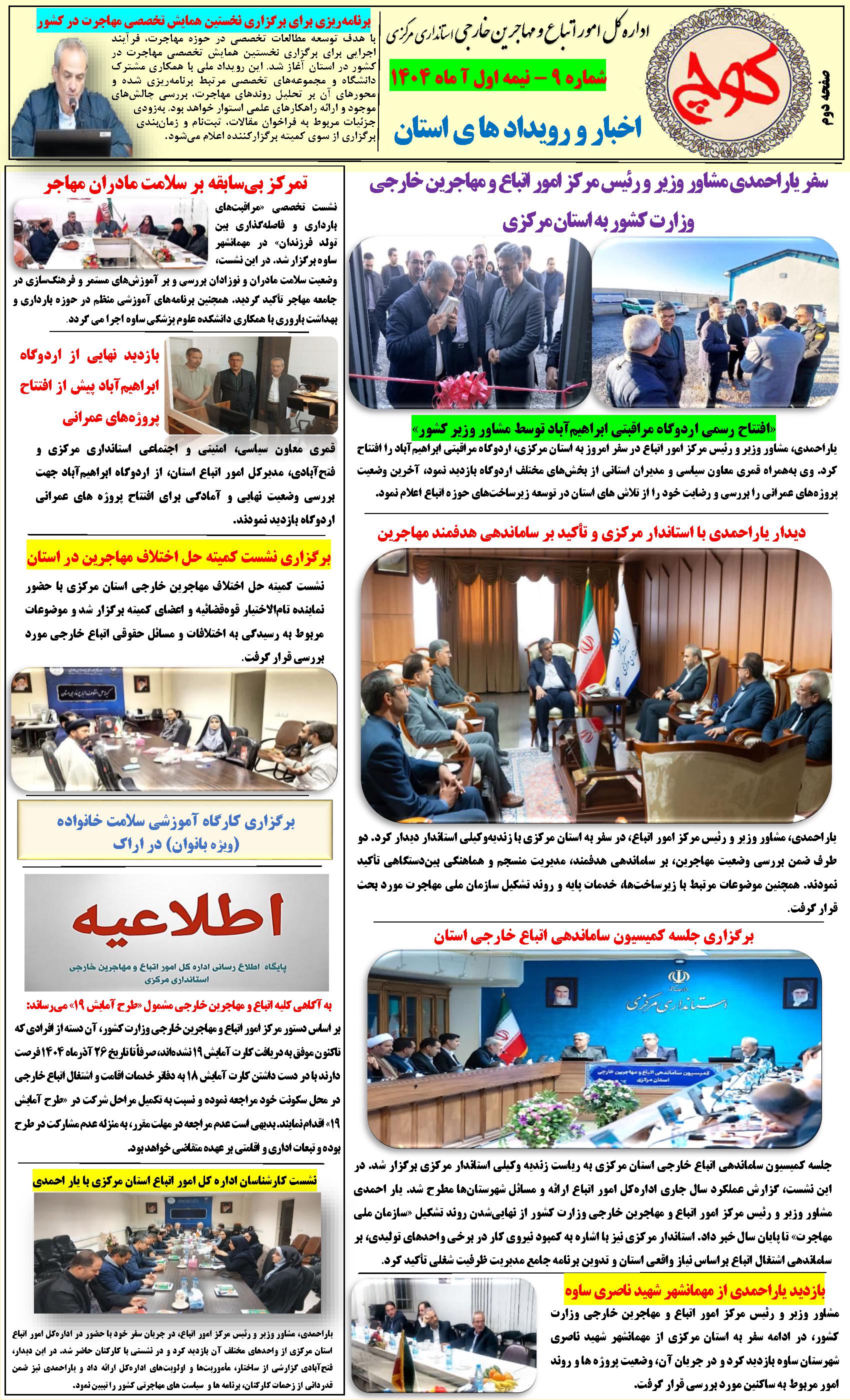 نهممین شماره نشریه کوچ، توسط دفتر امور اتباع و مهاجرین خارجی استان مرکزی منتشر گردید.